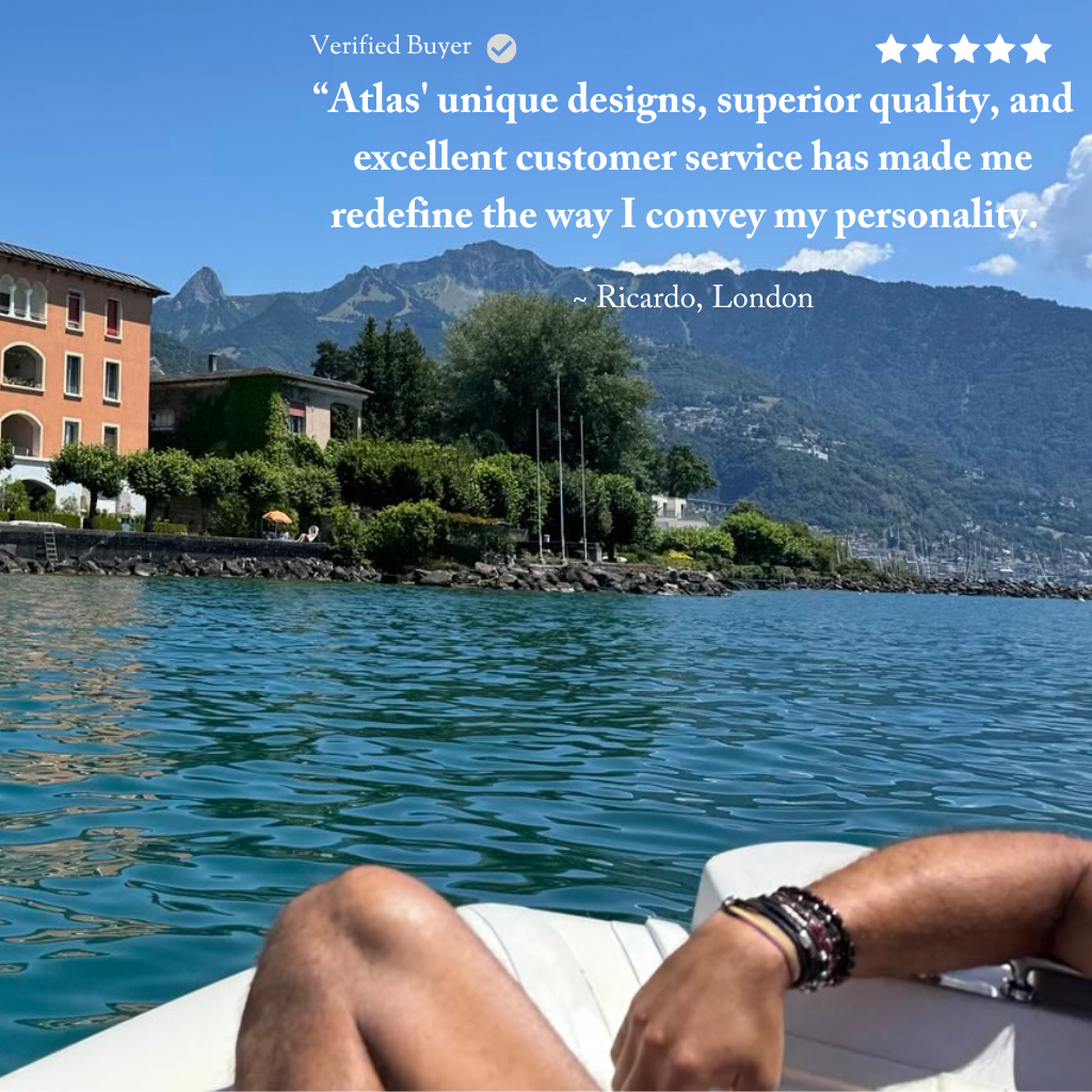 The Atlas Accent range combines texture and touch with elegance and colour. We designed it, using symbolism-infused beads, to be something special and to serve as an eye-catching ‘accent’ to your look and a tactile talisman of personal growth and transformation.