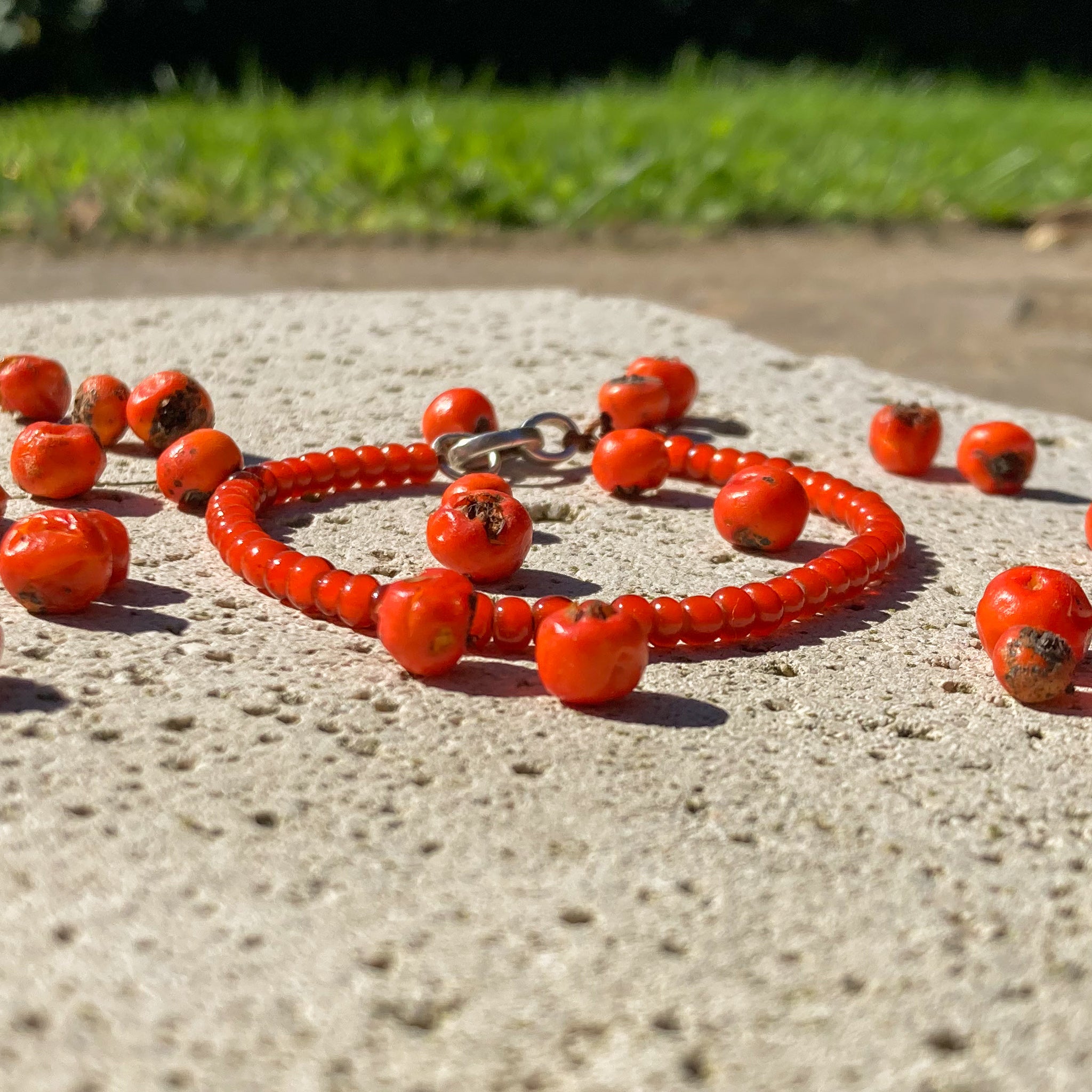Orange is the colour of vitality, positivity, and creativity - and these lustrous vintage trade beads carry more than just vibrant energy. Made in Venice and traded across continents, their white-glass cores gave them a glowing, almost inner-light quality that made them highly prized. Their rich and lustrous orange hue brings warmth and vibrancy to any look.