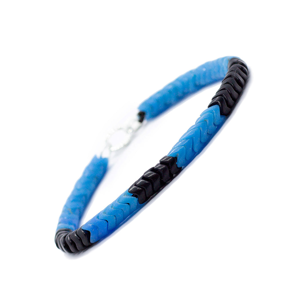 Our bespoke Accent bracelet with sky-blue vintage glass snake vertebrae trade beads is the ideal canvas on which to create a truly unique statement piece. This bracelet combines the history and symbolism of our snake beads with the power of numbers, and you can choose to embed either our black or coral colour snake beads. Snakes evoke creative life force and the strength and power to transform, and they are a powerful reminder that in life, transitions are a constant.