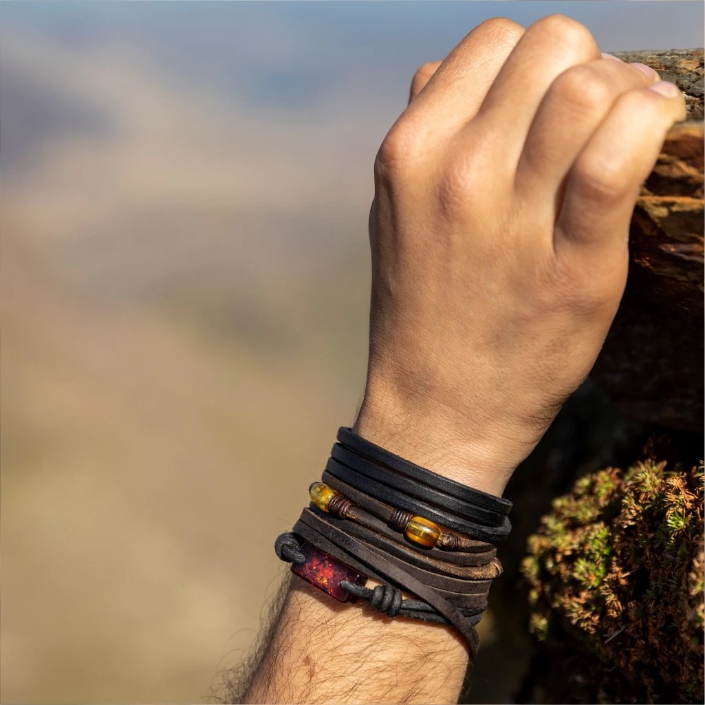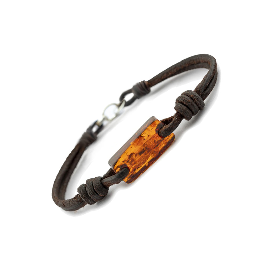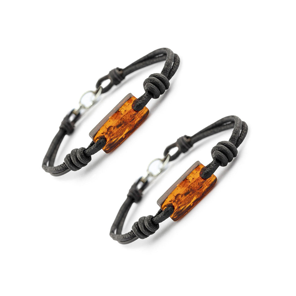 Aeon Friendship Bracelets - Dark Brown Baltic Amber & Leather