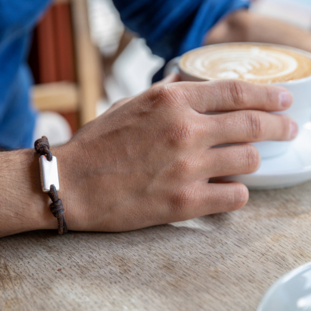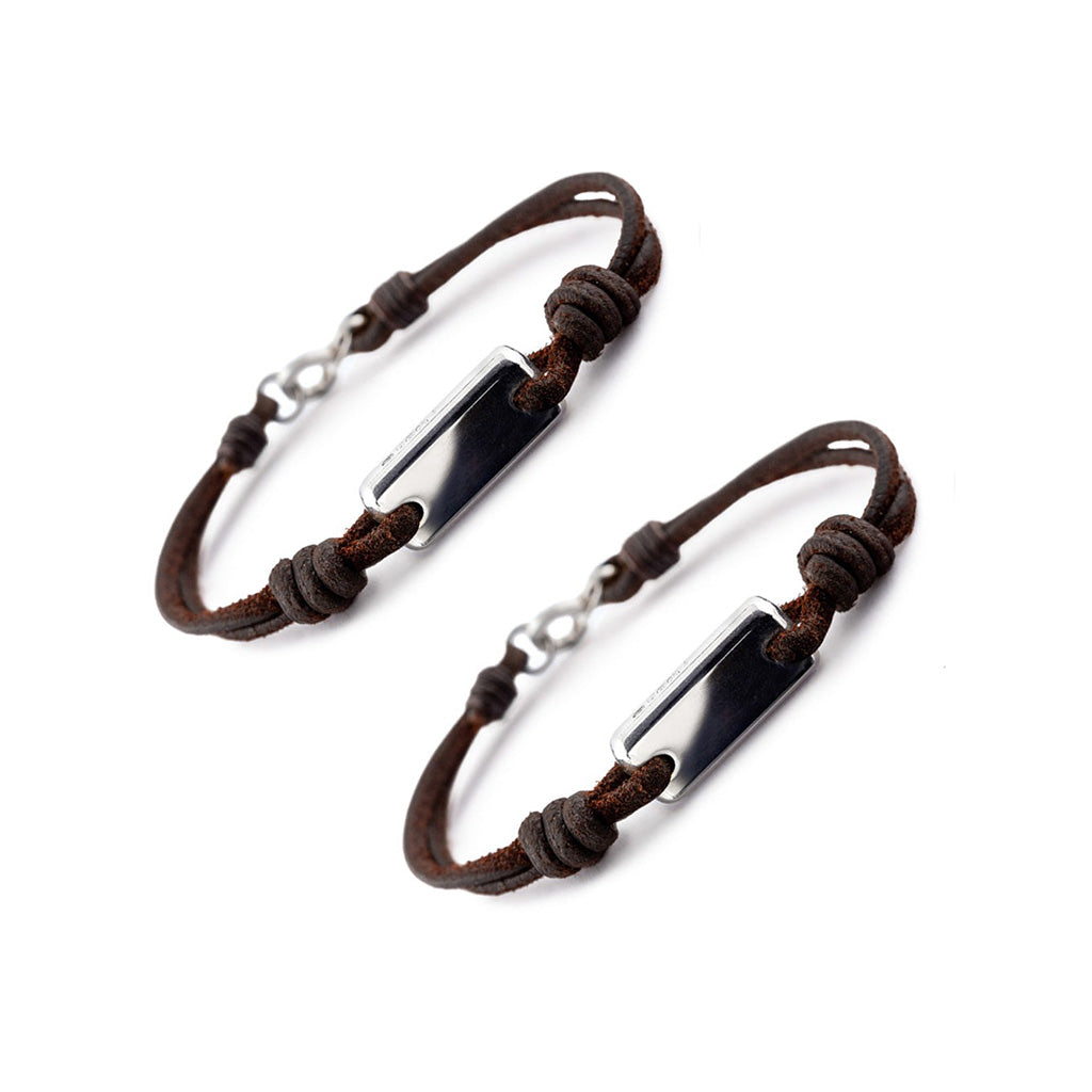 Aeon Friendship Bracelets - Recycled Sterling Silver Ingot & Dark Havana English Bridle Leather