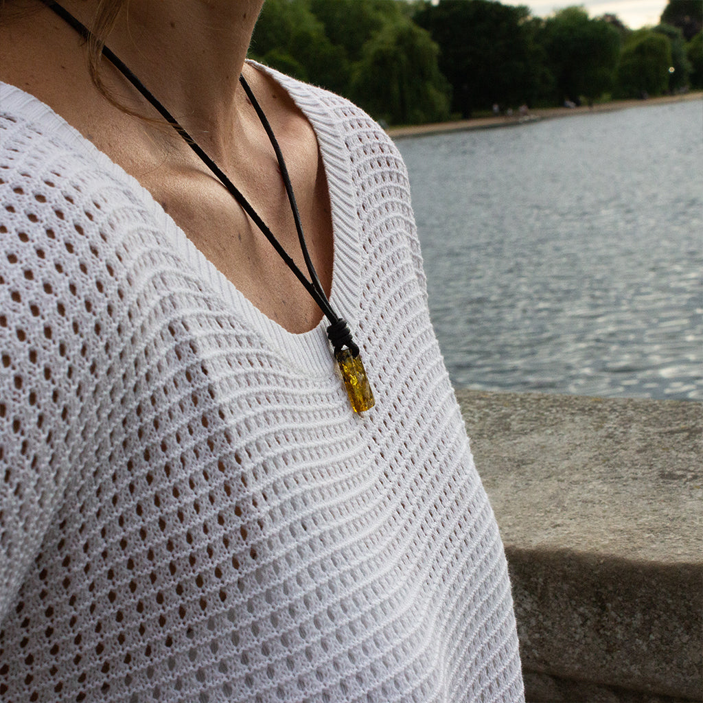 Material: Each pendant is uniquely crafted from authentic Baltic amber, renowned for its ancient properties that aid in alignment and balance.