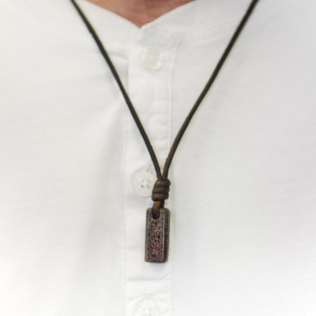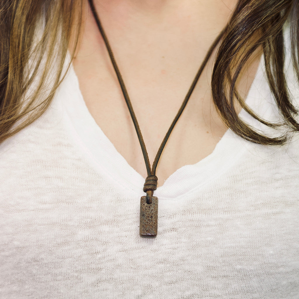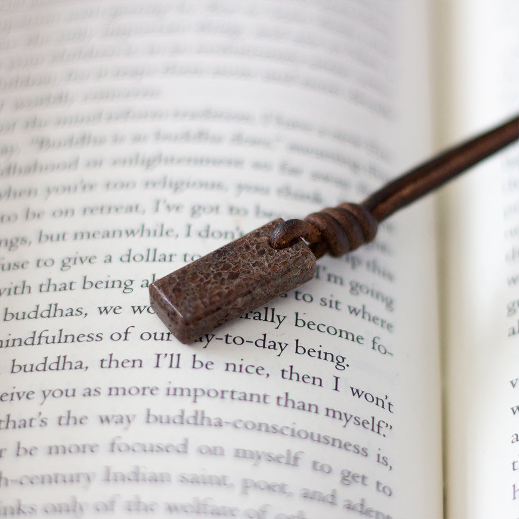 Brown Dinosaur Gembone with your choice of leather. See our Materials & Meaning and Product Care section for more information. Clasp in recycled sterling silver or 14k recycled gold.