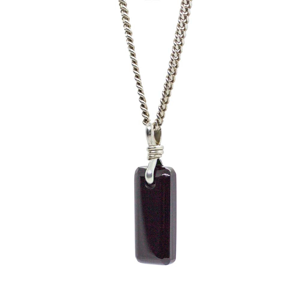 Amulet Necklace - Black Agate with Recycled Sterling Silver Chain