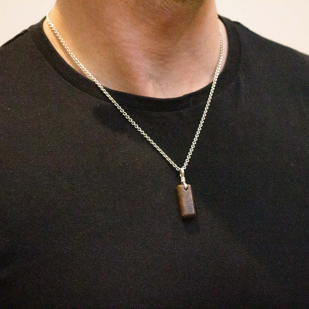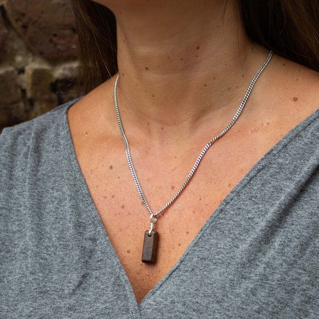 Amulet Necklace - Brown Dinosaur Gembone With Recycled Sterling Silver Chain