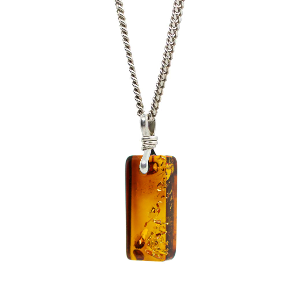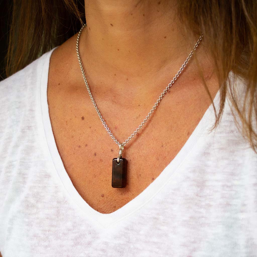 Dark Brown Amber Amulet Necklace with Recycled Sterling Silver Chain