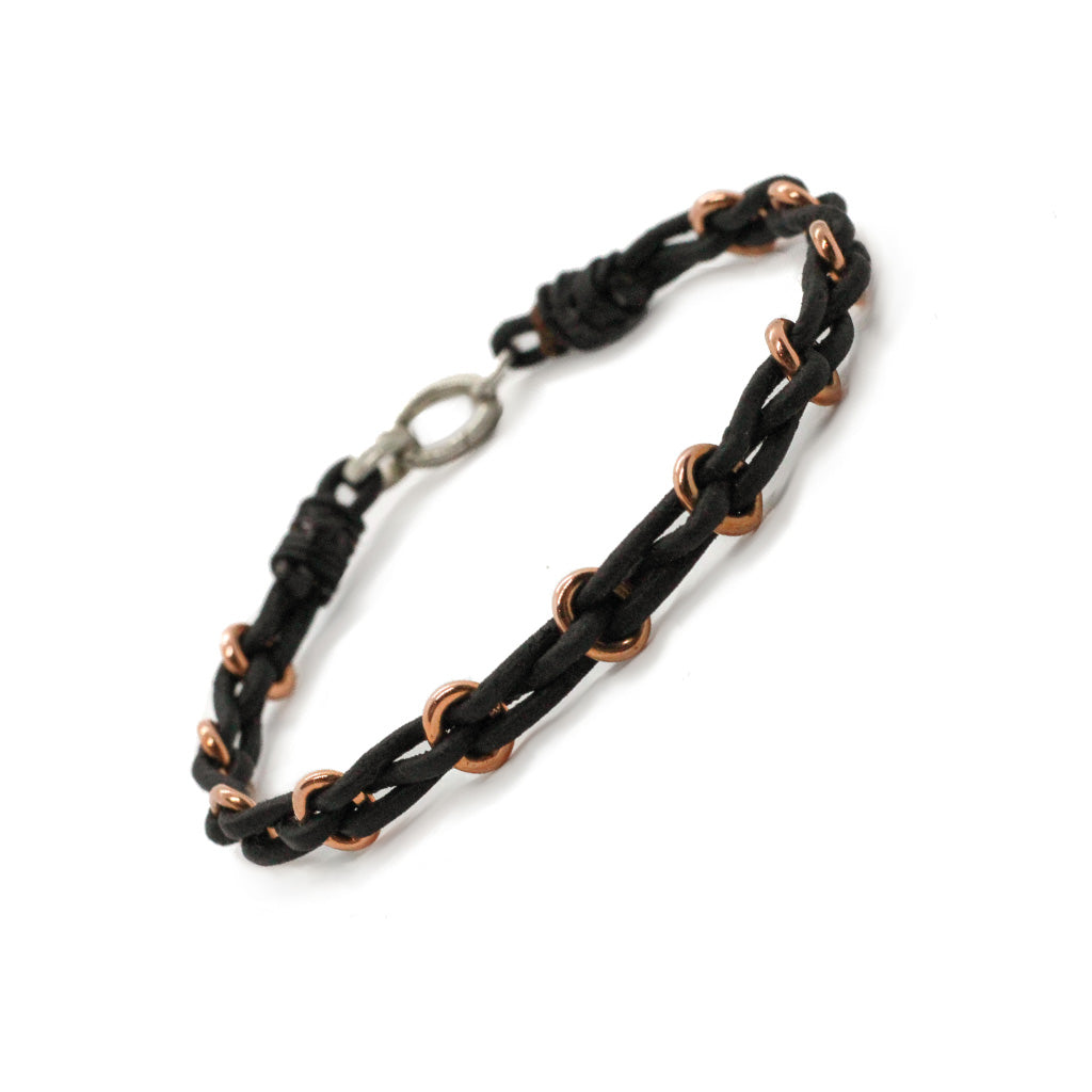 Recycled Copper rings and Australian Kangaroo leather. Clasp in recycled sterling silver.