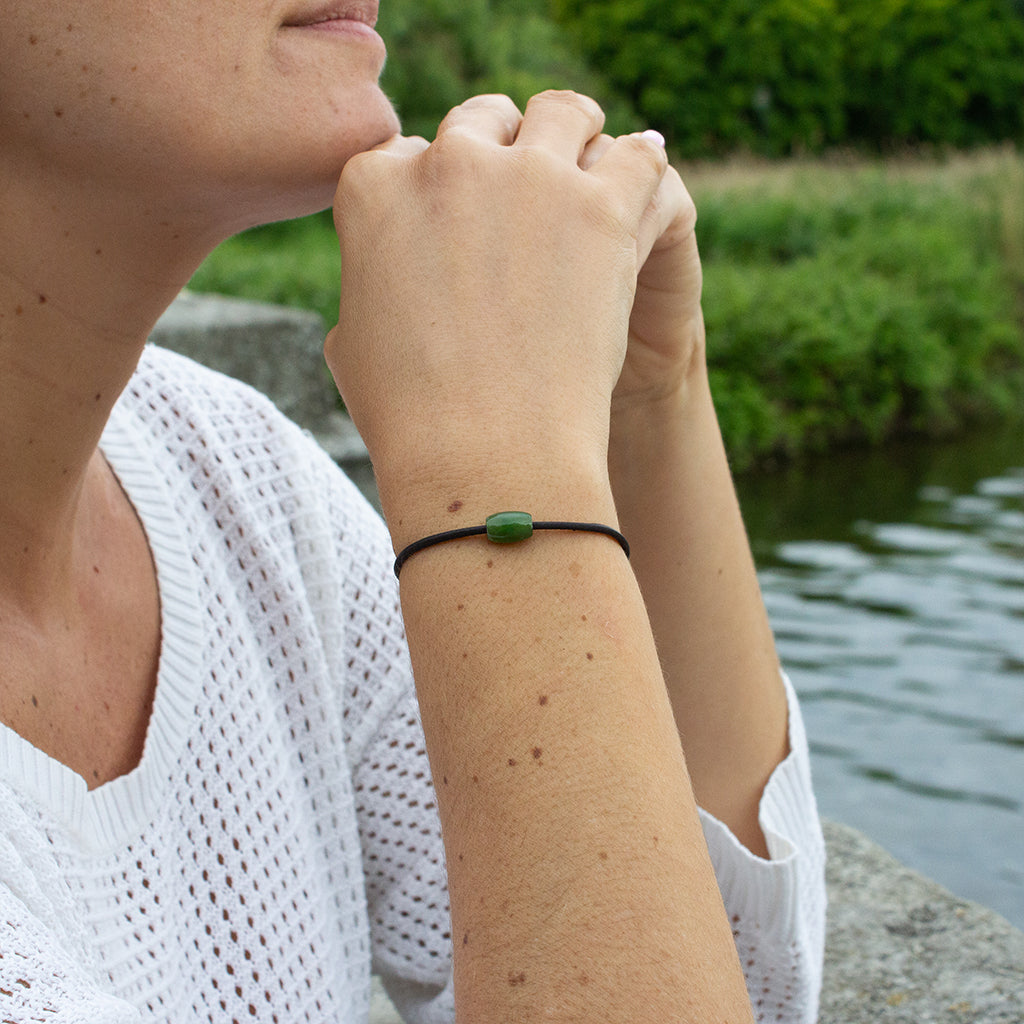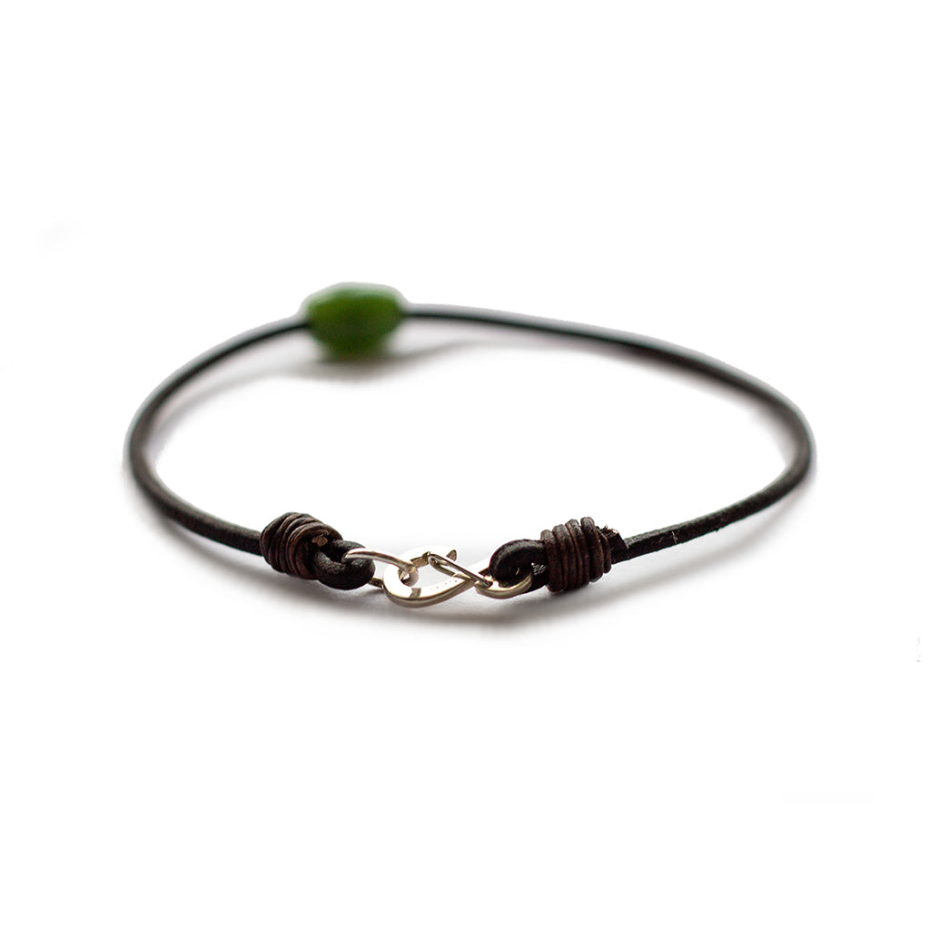 Token Bracelet for Abundance & Prosperity - Jade (Nephrite) on Australian Kangaroo Leather