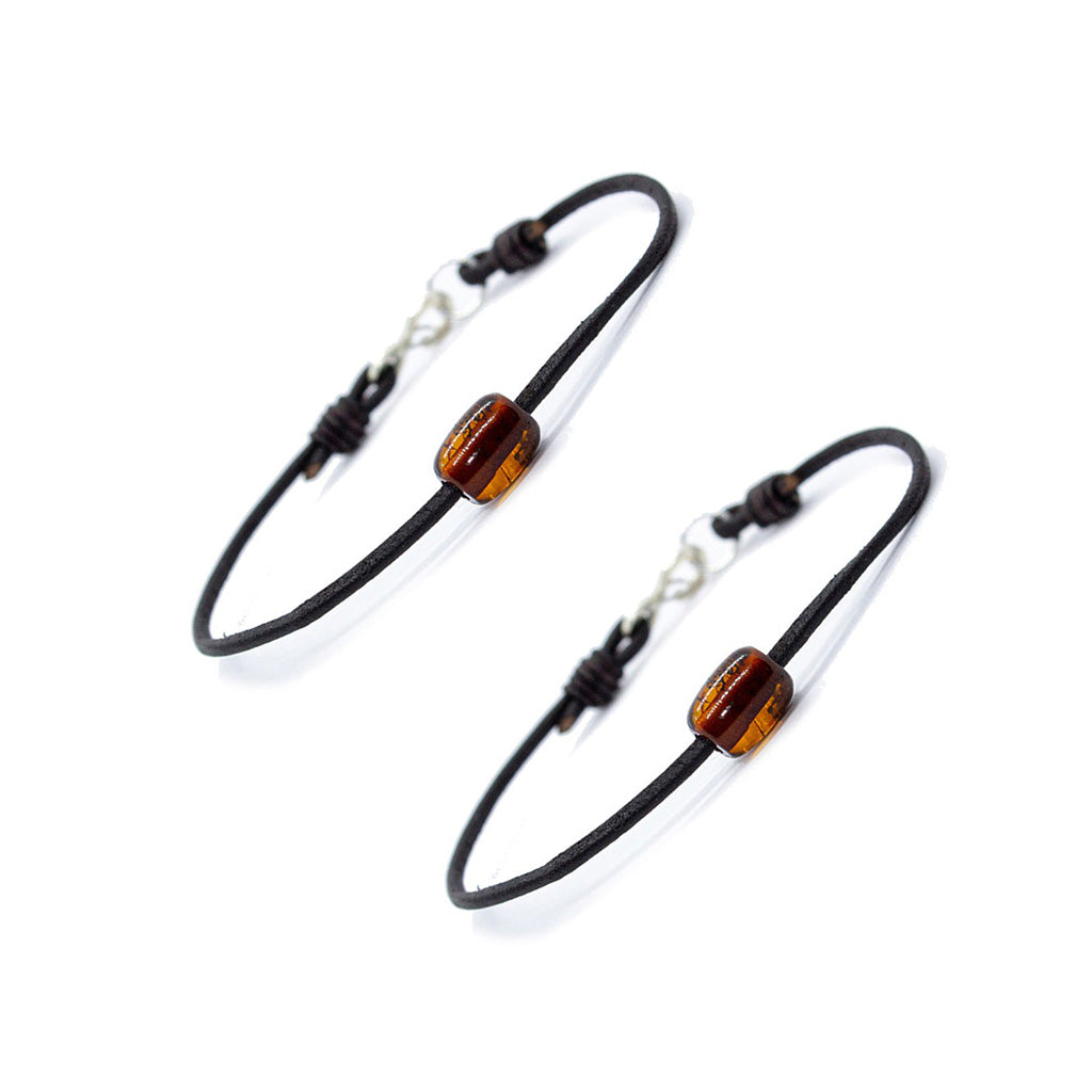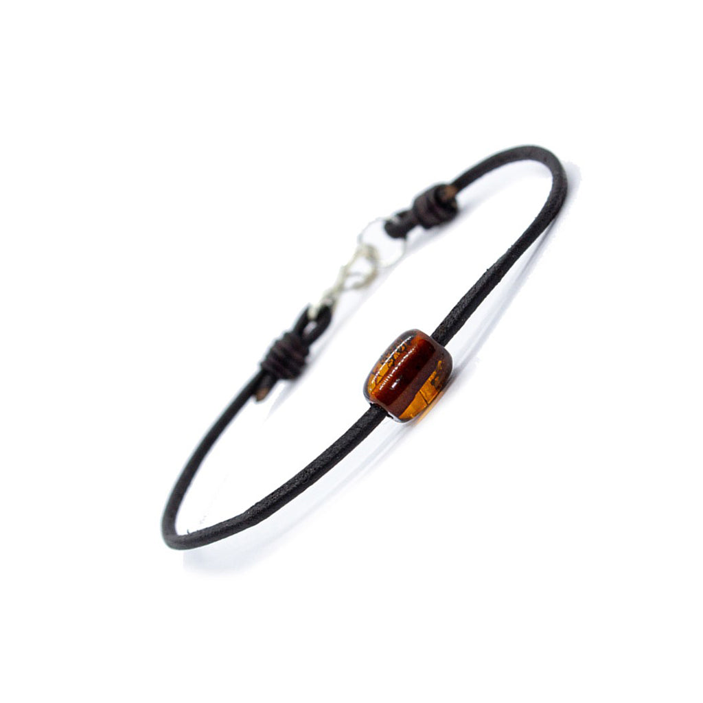 Token Friendship Bracelets - Dark Brown Baltic Amber on Australian Kangaroo Leather