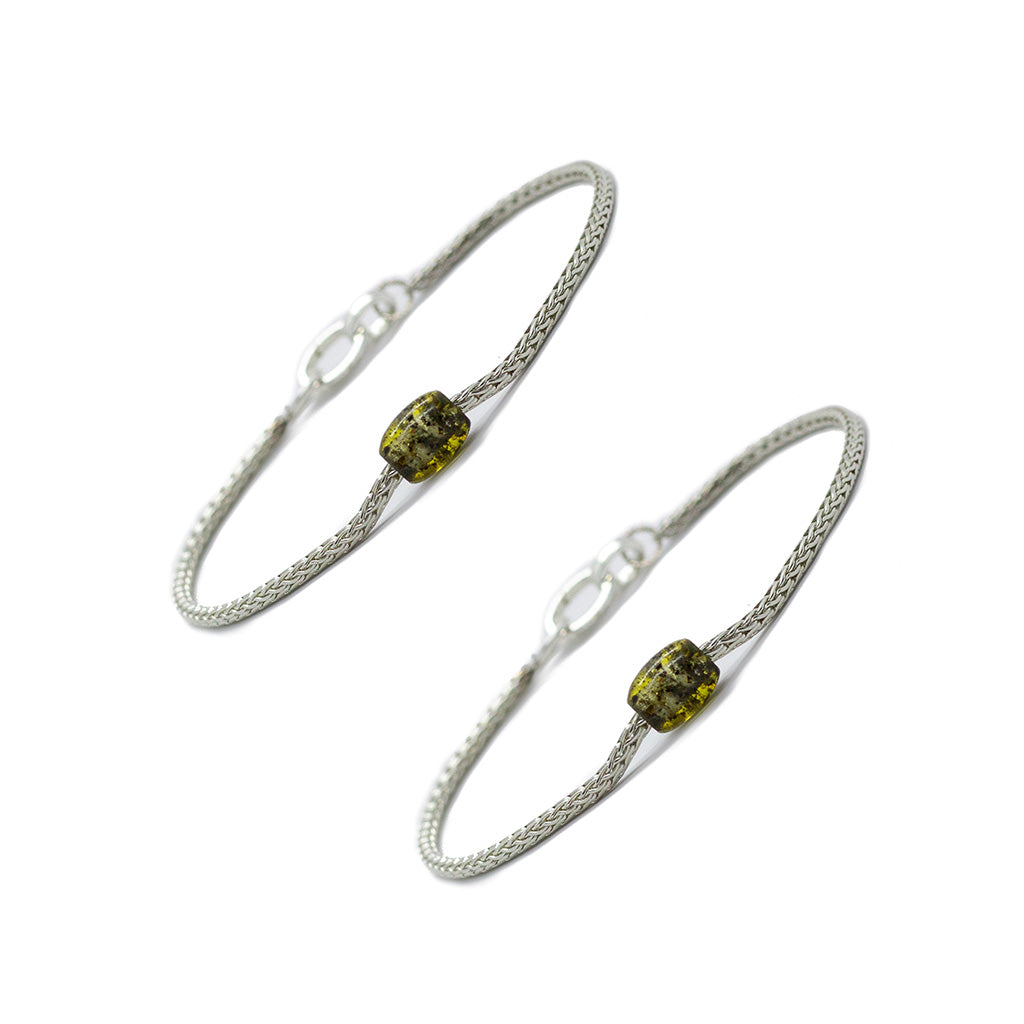 Token Friendship Bracelets - Green Baltic Amber on Recycled Sterling Silver Chain