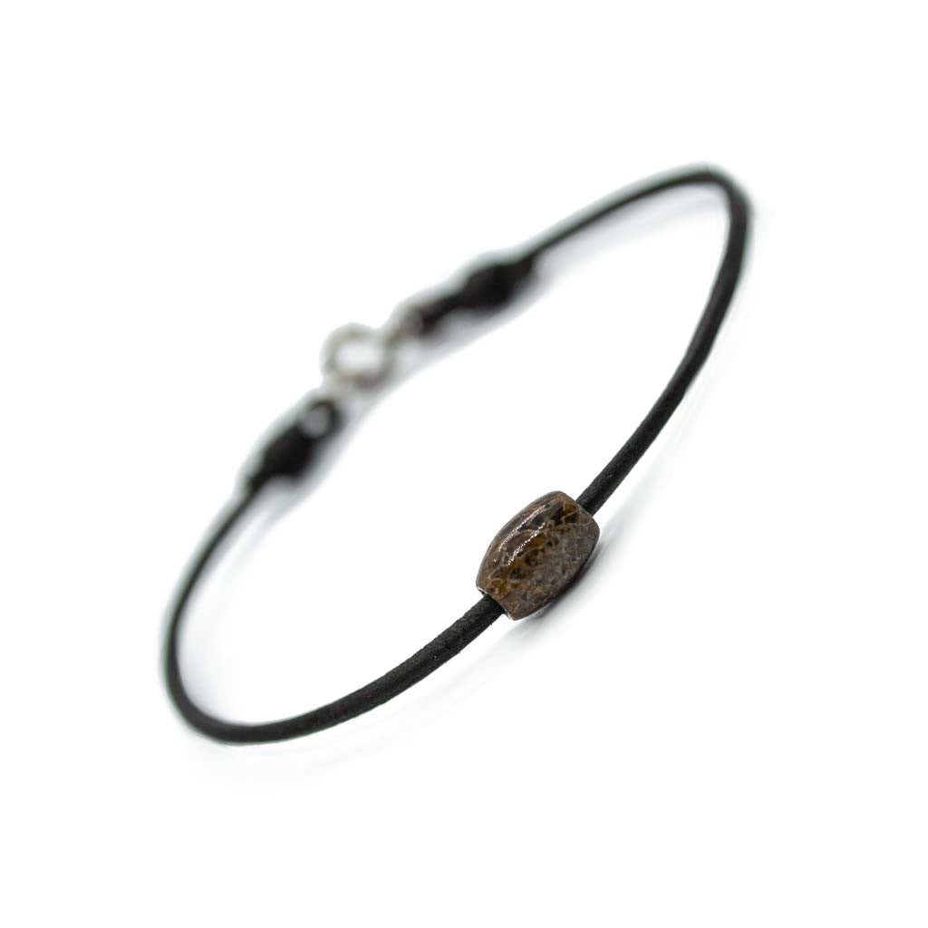 Brown dinosaur gembone on kangaroo strap. Clasp in recycled sterling silver.