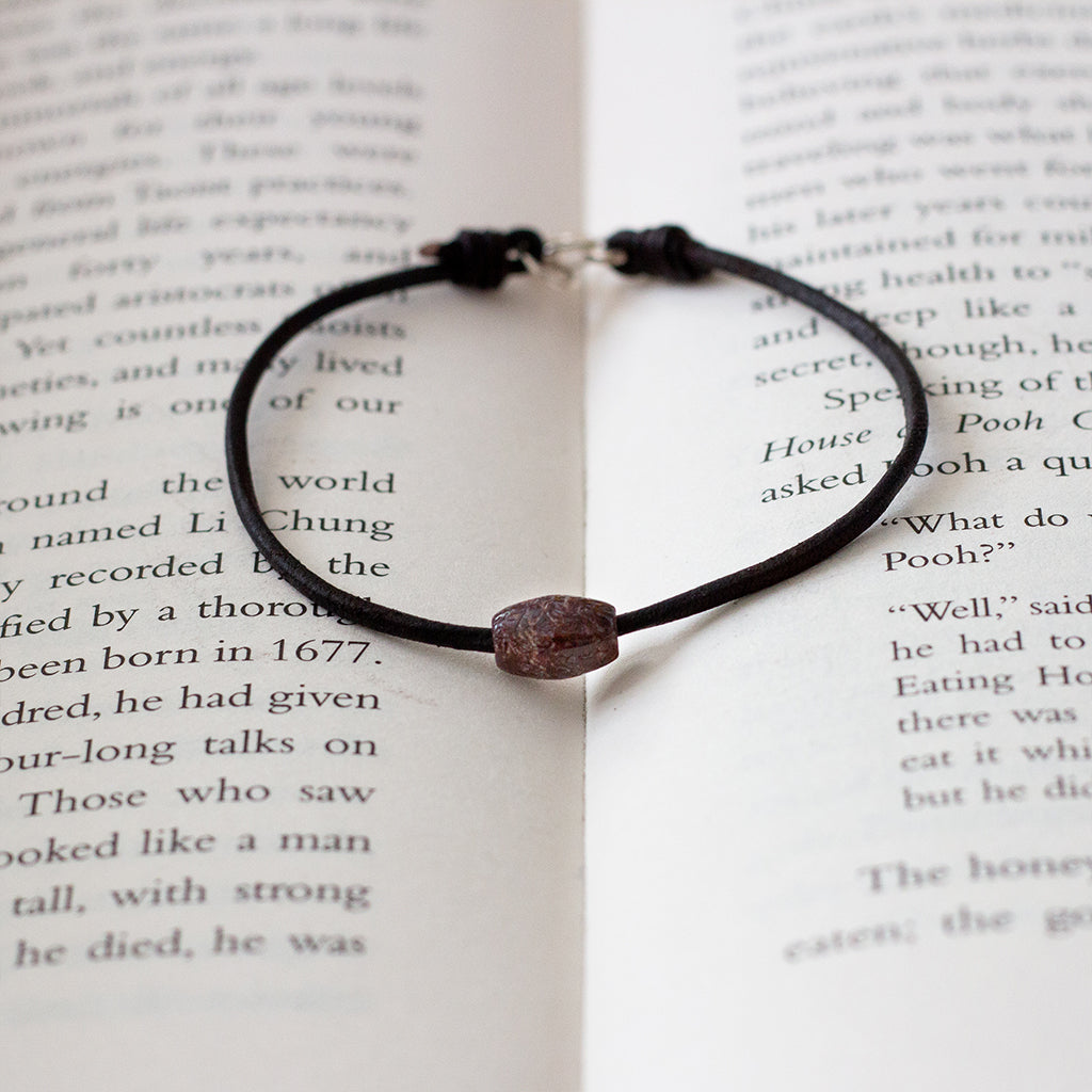 Token Friendship Bracelets - Red Dinosaur Gembone on Australian Kangaroo Leather