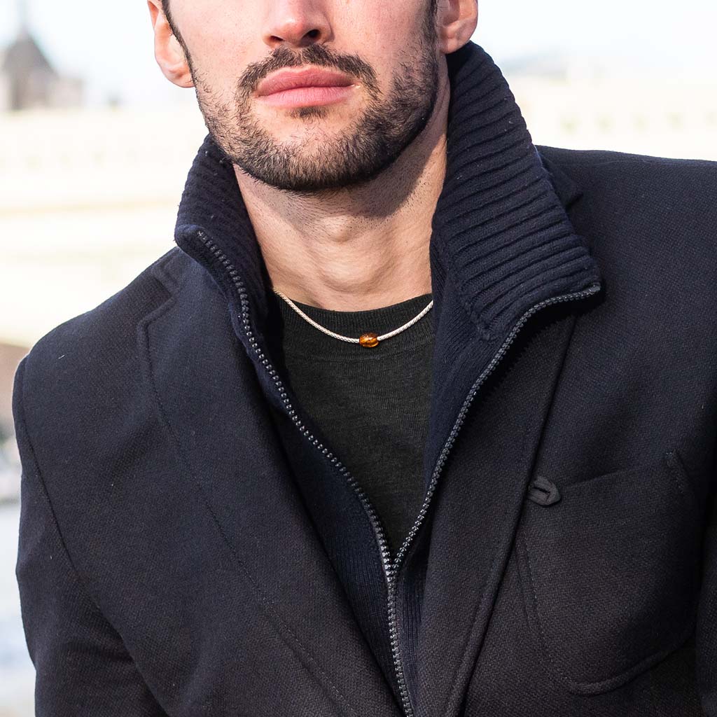 Token Necklace for Alignment & Radiance - Brown Baltic Amber on Australian Kangaroo Leather