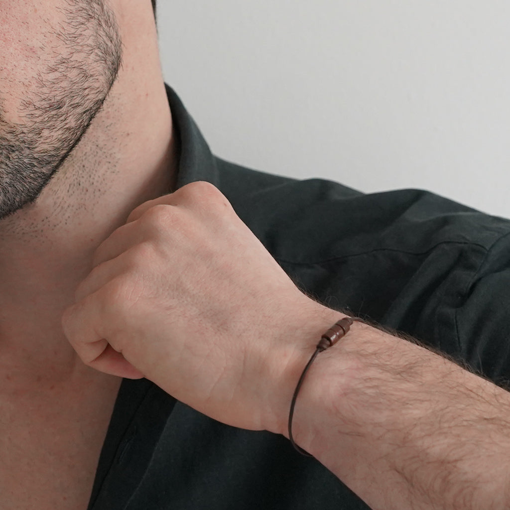 Inspired by ancient Tibetan Buddhist meditation traditions, the Token3 is designed to calm the body and mind. Featuring three thick round wheels and sturdy Kangaroo leather, it's our newest take on fidget jewellery.