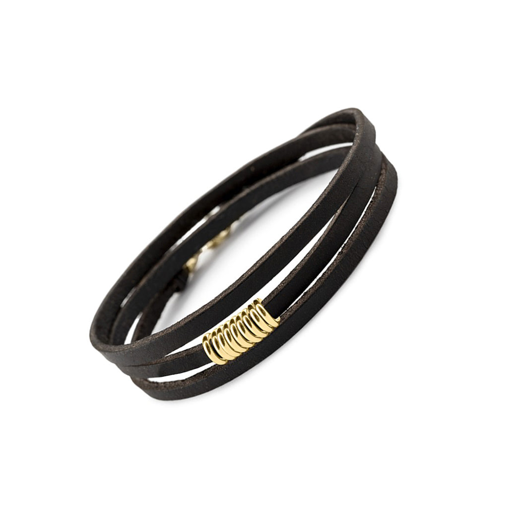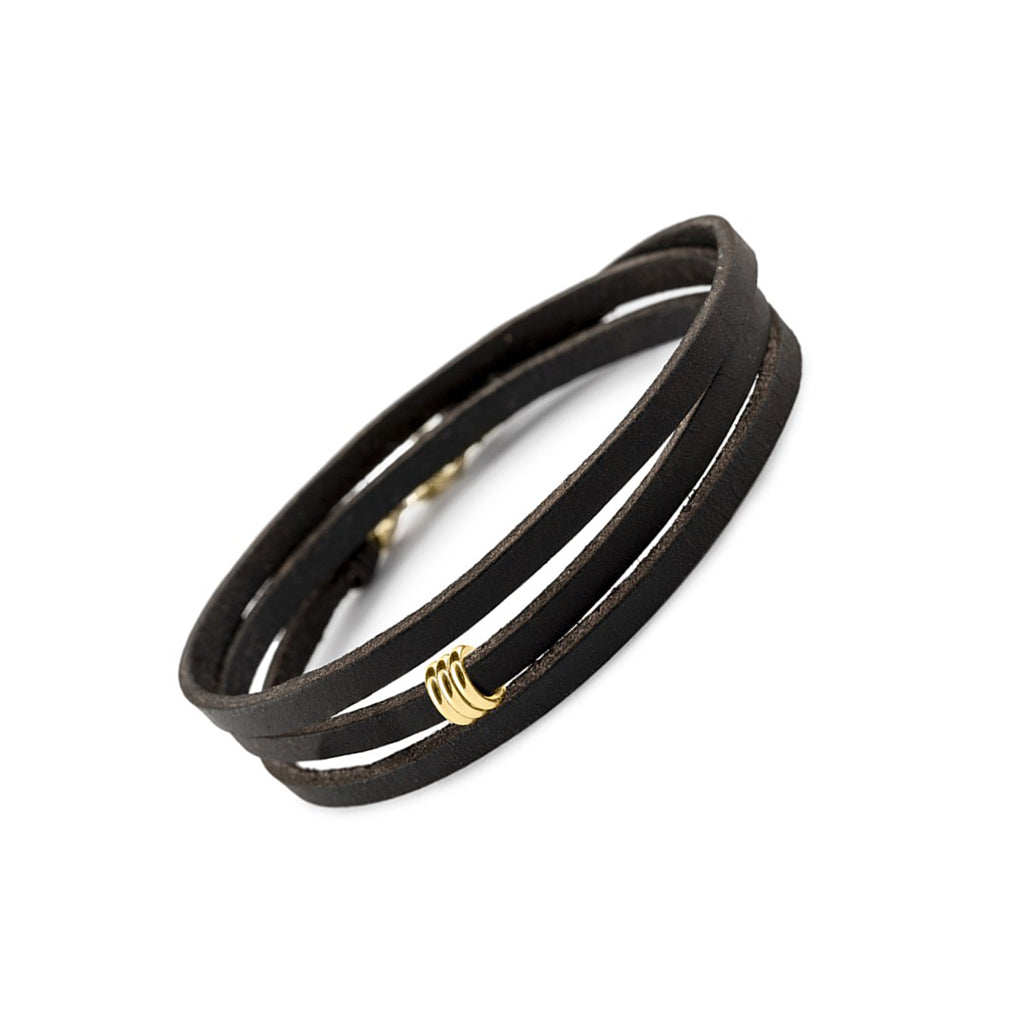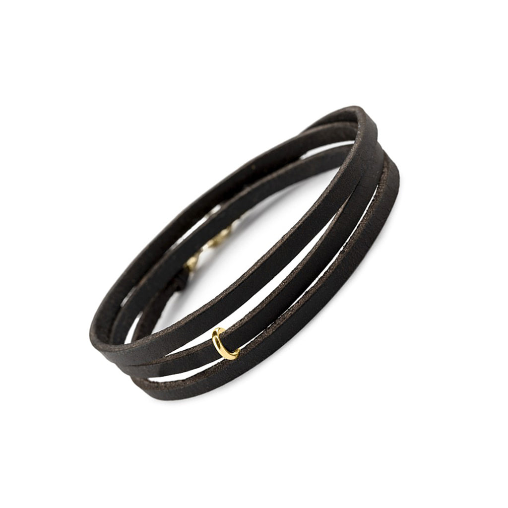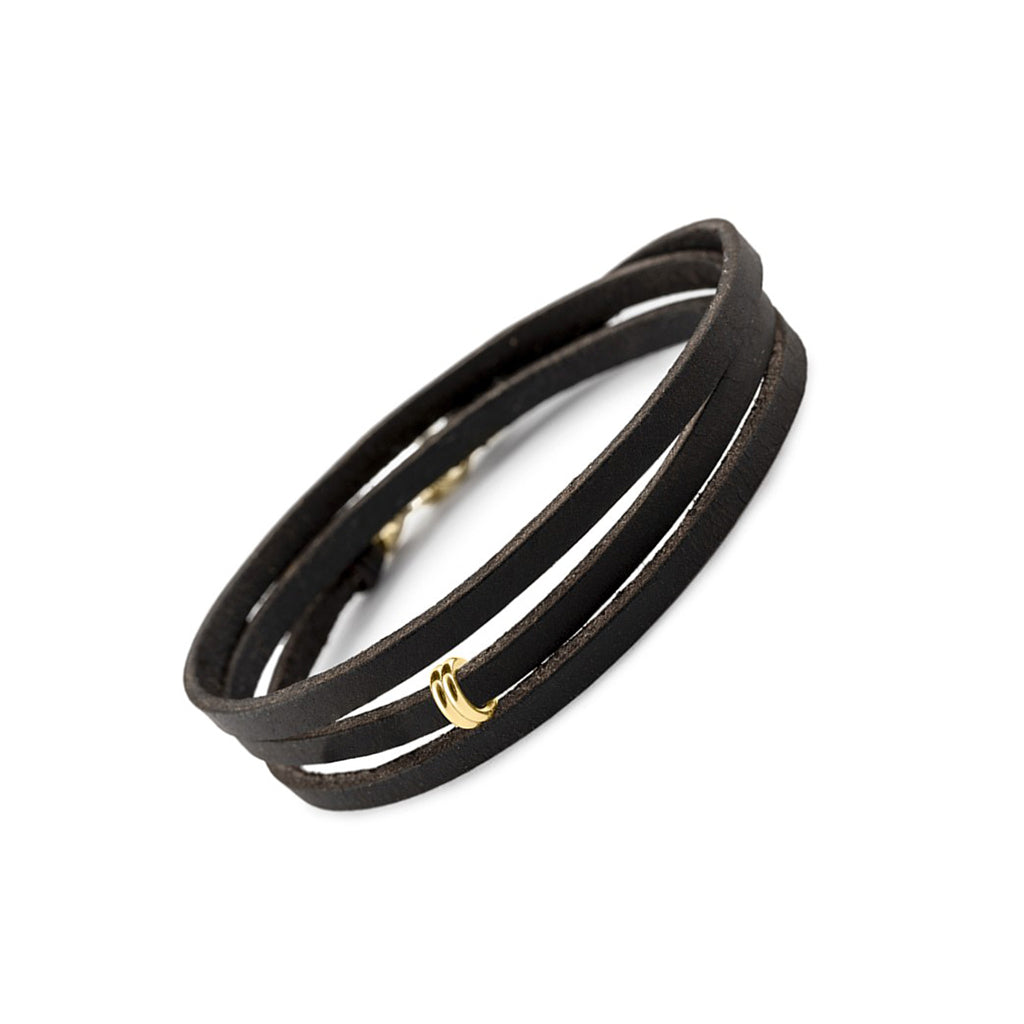The Atlas ‘TrinityALS’ captures the power of numerology. The bracelet's timeless and sophisticated design is enhanced with deeper meaning by adding your choice of up to 11 recycled 14k yellow gold rings to the leather lace, which wraps three times over the wrist.