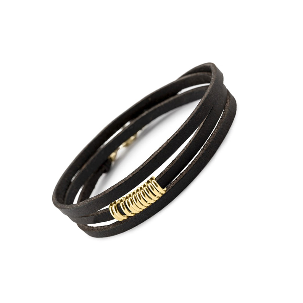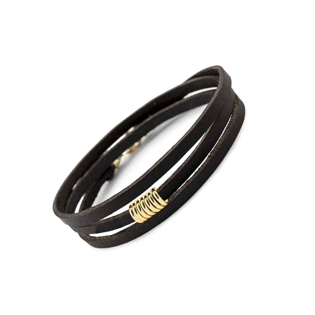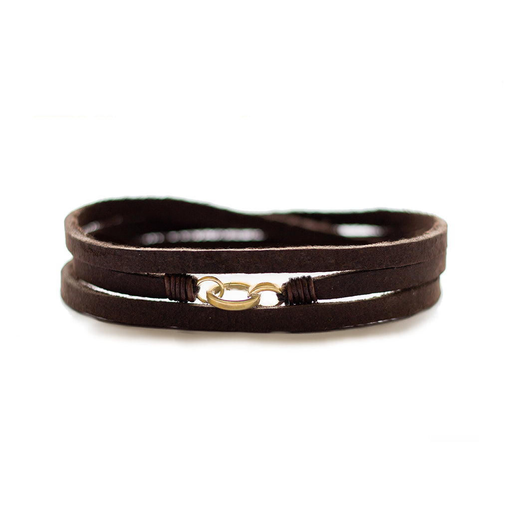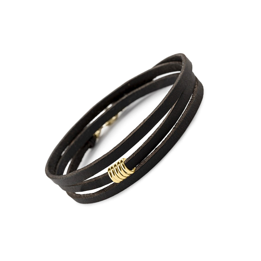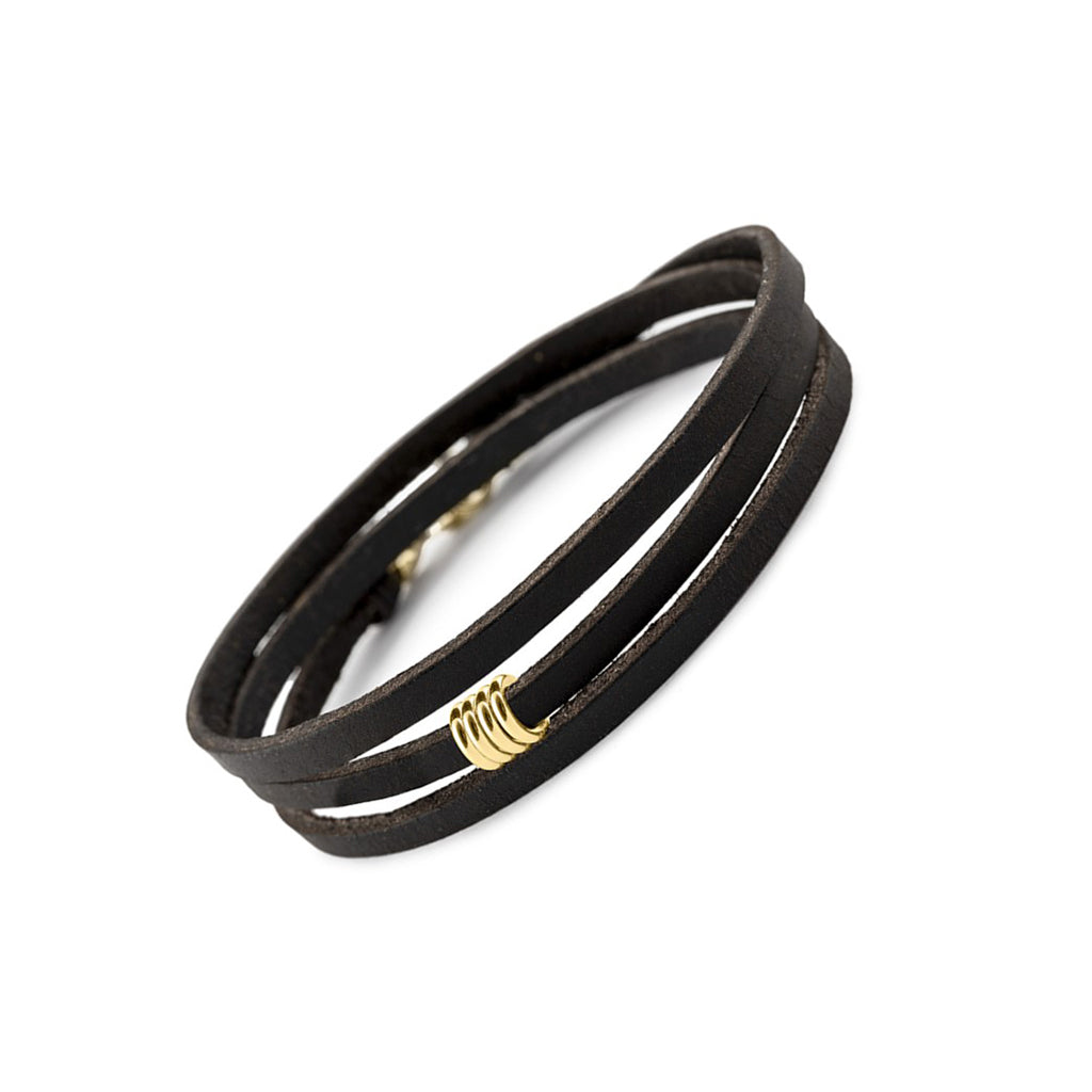 The Atlas ‘TrinityALS’ captures the power of numerology. The bracelet's timeless and sophisticated design is enhanced with deeper meaning by adding your choice of up to 11 recycled 14k yellow gold rings to the leather lace, which wraps three times over the wrist.