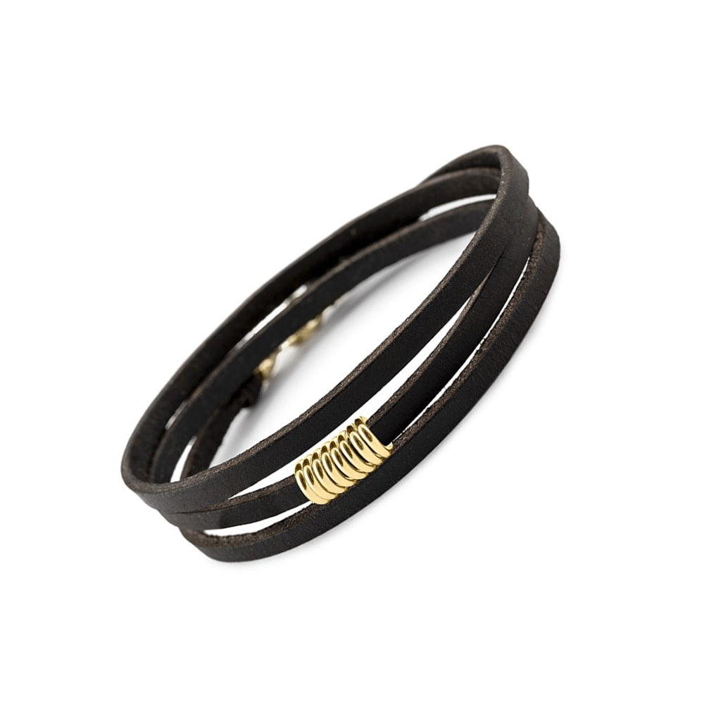 Recycled 14k yellow gold and African Kudu leather. Clasp in recycled 14k yellow gold.
