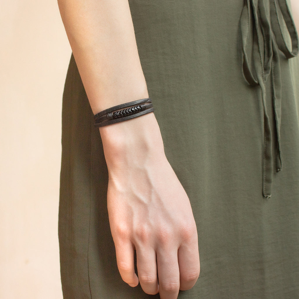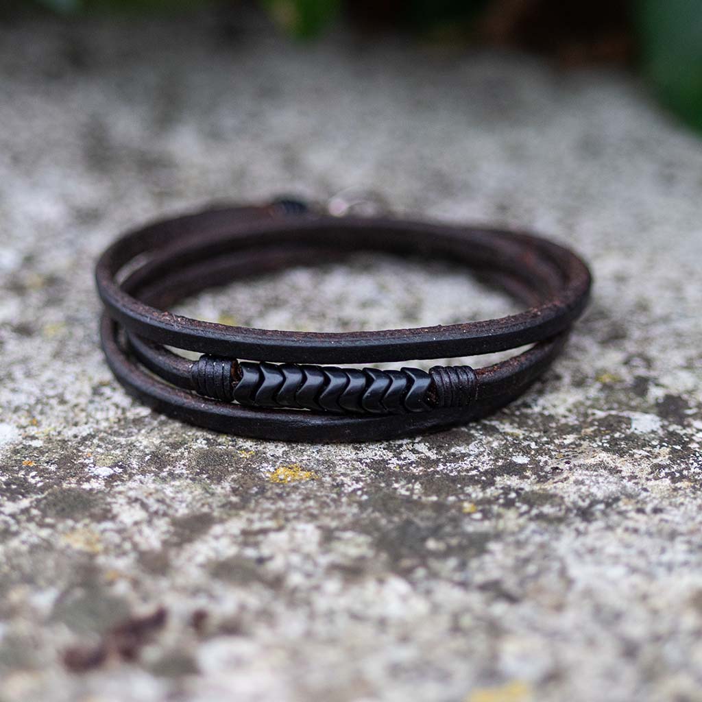 Trinity1 Bracelet - Vintage Black Snake Vertebrae Beads & Dark Havana English Bridle