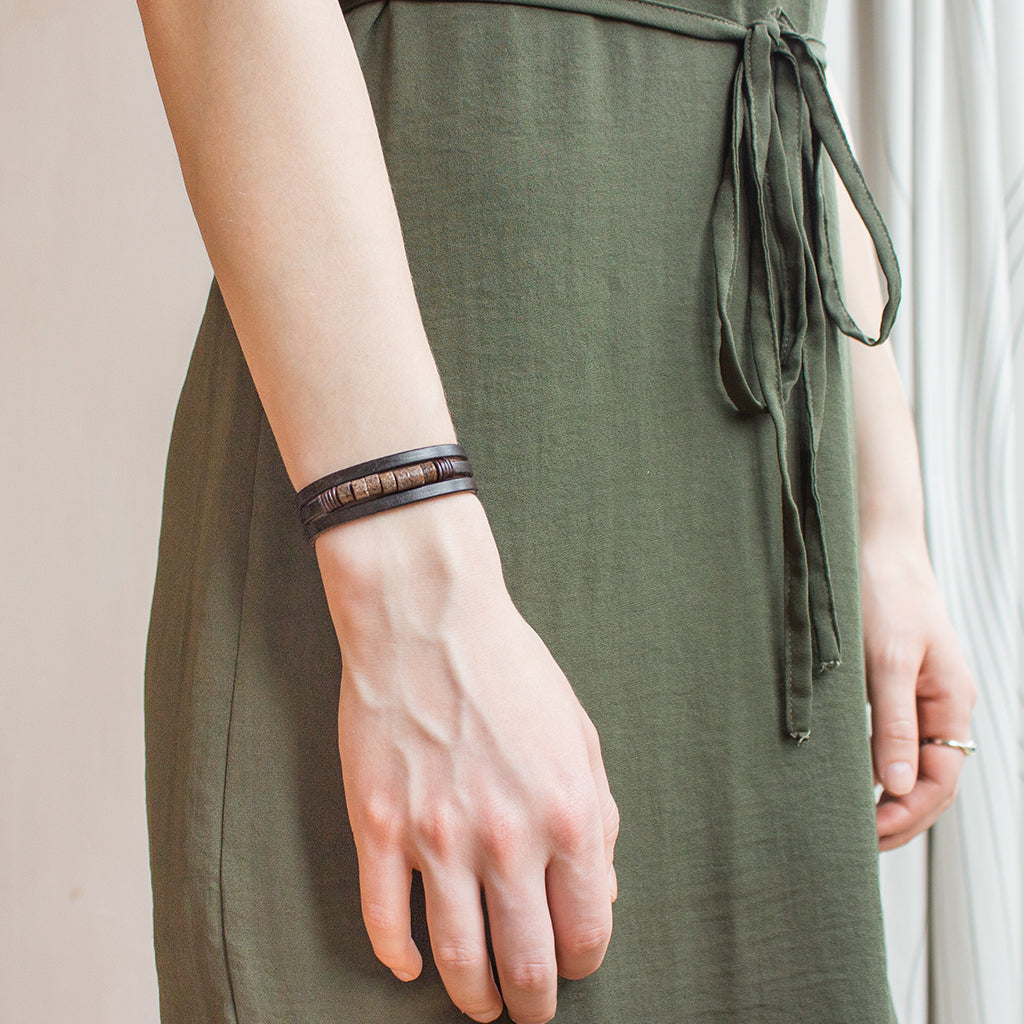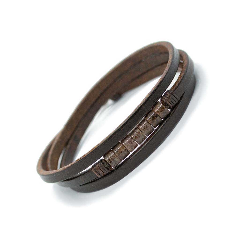 Trinity1 Bracelet - Dinosaur Gembone & Dark Havana English Bridle