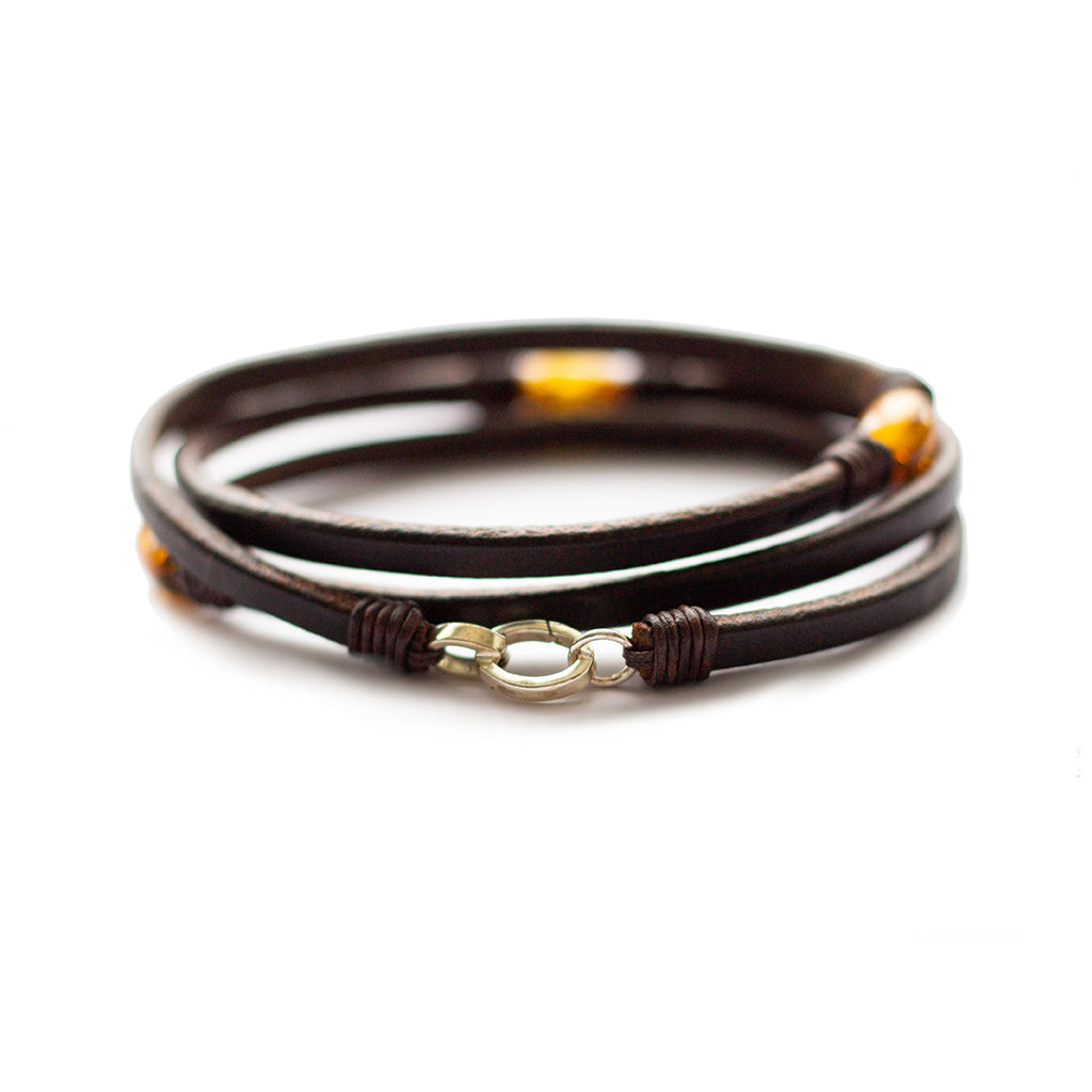 Brown Baltic amber and American Bison Leather.