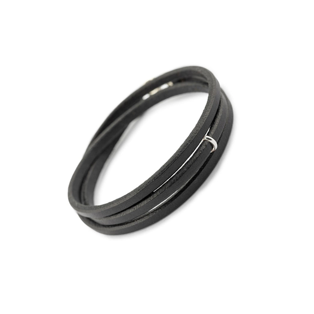 The bracelet's timeless and sophisticated design is further enhanced with deeper meaning by adding your choice of up to 11 rings of recycled sterling silver to the leather lace, which wraps three times over the wrist.